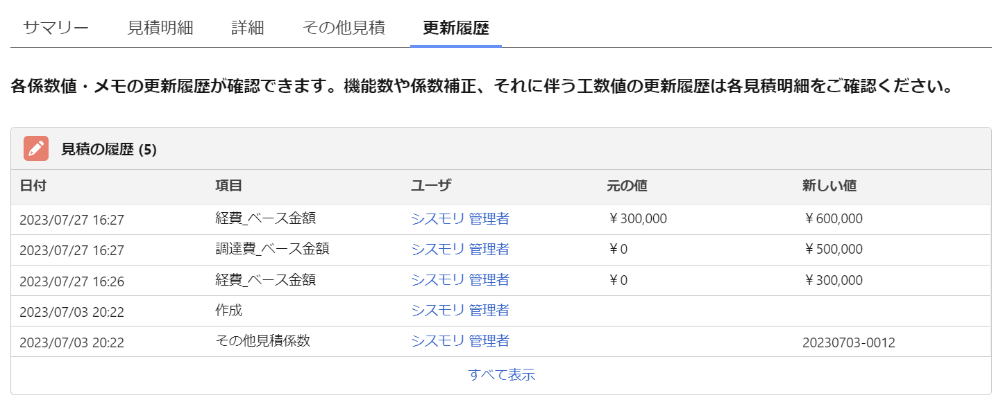※履歴の保存期間は、Salesforce組織の項目履歴データの保持期間に依存します。必要に応じて見積レコードのメモ欄や、見積コピー機能を利用したバージョン管理をご利用ください。